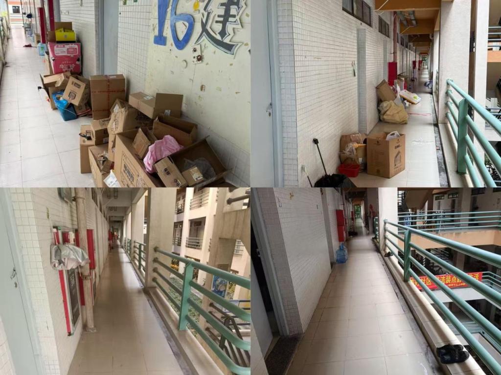 在学生党员志愿者的带领下,同学们分工协作,携带清洁工具,分片区、分楼栋展开系统清理。大家重点对易滋生蚊虫的区域进行彻底清扫:在宿舍阳台清理积水容器,清除水垢苔藓,并对下水道口规范喷洒杀虫剂;在室内清理饮水机接水槽等隐蔽积水点;在公共区域整理堆放杂物,清运残留食品垃圾。