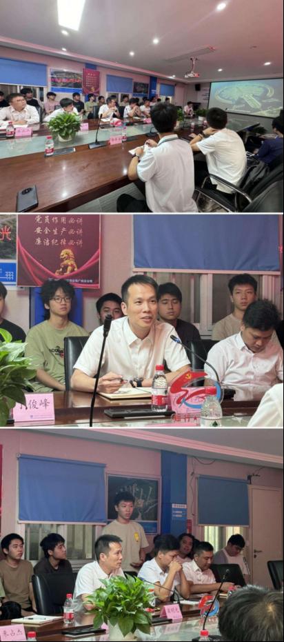 学院2023级土木工程2班“校友班主任”、工程管理专业2008届校友、中建八局知识城广场项目经理梁明光带领项目部班子成员热情接待了来访师生。校友与师生首先在项目部开展了一场座谈会。座谈会上,项目总工程师向师生们介绍了知识城广场项目的各方面情况。梁明光及项目部副总工程师等就行业情况等主题进行了介绍。梁明光分享了自身从业经历,并对行业情况、择业就业形势等作了分析。他勉励同学们根据自身兴趣、职业认知等条件建立适合自己的职业规划,避免人云亦云。座谈会上同学们踊跃提问,梁明光与项目部班子成员就生涯规划等主题答学生提问,座谈会气氛融洽。