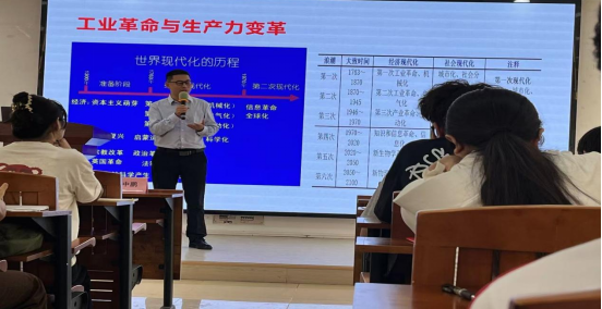 感悟思想伟力,凝聚奋进动能。11月9日,马克思主义学院副院长张中鹏老师为学院入党积极分子培训班学员开展题为《在发展新质生产力中展现青年担当》的讲座。张中鹏老师深入说明新质生产力的内涵和特征,厘清新质生产力与中国式现代化的关系,展示新质生产力对高质量发展的强劲推动力、支撑力,勉励同学们总结理论以指导新的发展实践,为发展新质生产力贡献青春力量。此外,积极分子学员们集中学习了《党章电视辅导教材》、《学习贯彻党的二十届三中全会精神系列专访》等内容,进一步深化了对党的性质宗旨的认识。