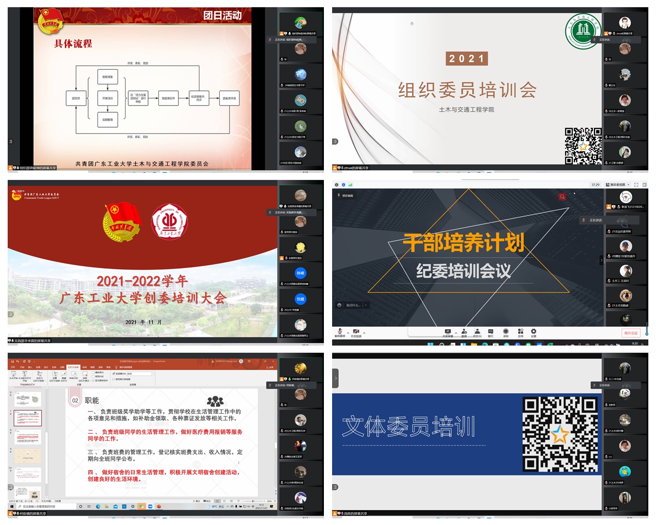 1127日,培训班面向全体班干部线上开展了团支部建设、班级建设业务培训会。针对班干部的职责划分,本次培训分九场进行。培训会由团委、学生会等学生组织相关部门负责人主讲,主讲人从班级工作现状以及当前面临的工作问题与班干部进行了分析,然后从班干部的定位、作用、意识、素质、主要任务以及收获等方面,结合实际情况,进行了详细的讲解。通过培训,班干部们对如何开展班级工作、团支部建设有了更加具体的认识,并启示他们以优秀班集体为榜样,认真开展班级建设各项工作,更好地为班里同学服务。