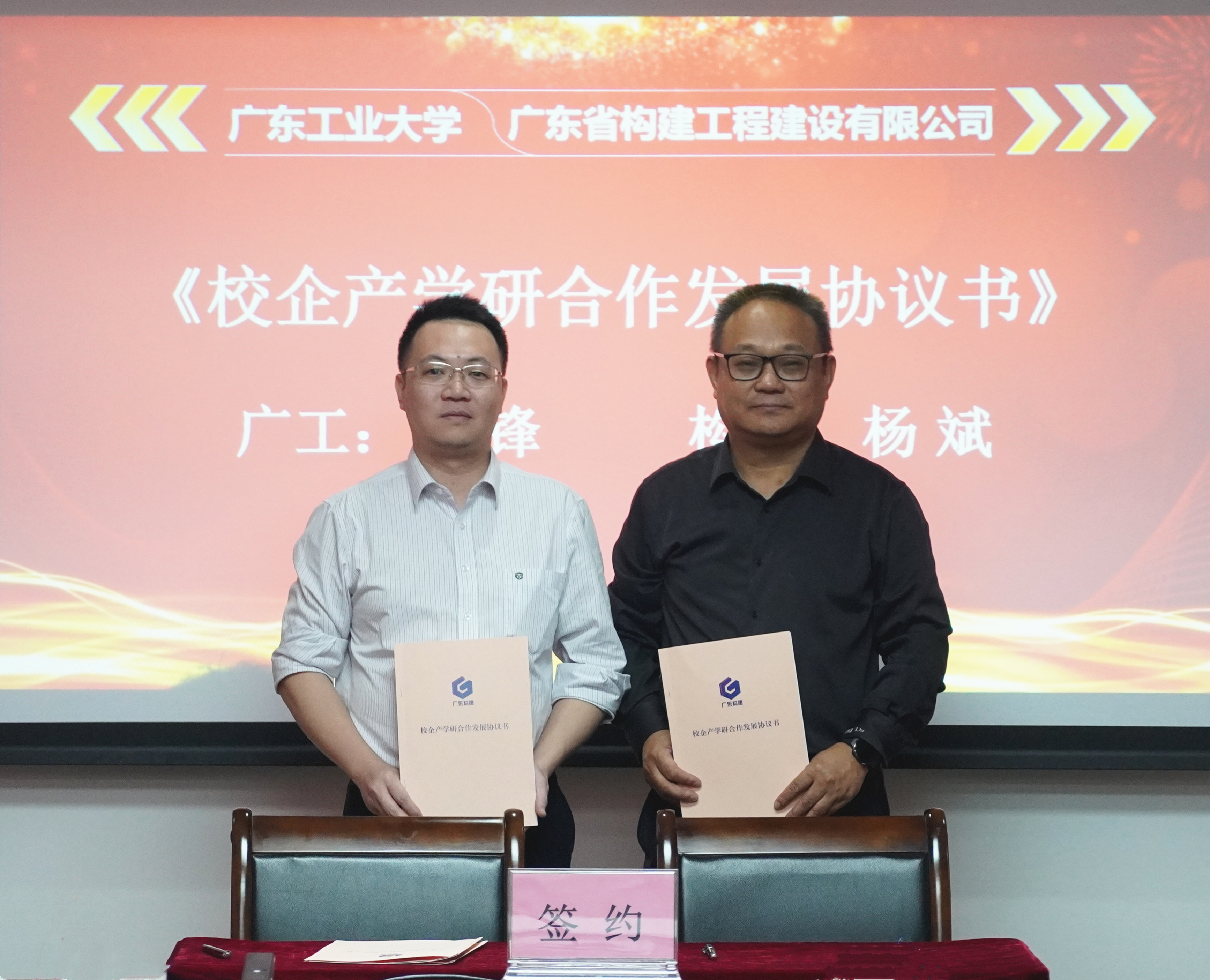 10月28日下午,学校党委常委、副校长陈卓武,教务处副处长肖明、学院院长刘锋等一行8人,赴广东省构建工程建设有限公司开展校企产学研合作签约暨揭牌仪式。广东构建董事长蒙绪权、总经理杨斌等参加了仪式,仪式由杨斌主持,广东构建董事长蒙绪权、学校党委常委副校长陈卓武先后致辞。