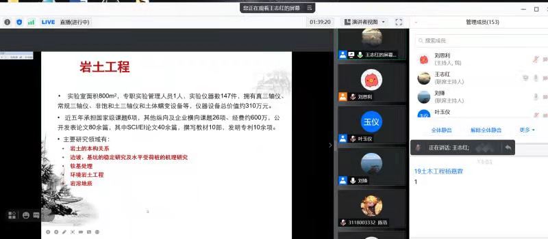 为深入挖掘与培育学院考研读研的优质本科生源,搭建本科生与科研导师之间的学习沟通桥梁,同时让同学们更好地了解研究生推免工作流程、学校推免及考研政策,我院于2021年6月25日通过线上腾讯会议的方式举行2022届研究生推免、考研工作解析会暨“千苗计划”研究生优质生源培养库建设说明会,学院院长刘锋教授、副院长王志红教授、2018级本科生辅导员刘思利、土木工程专业2019级学术型免试硕士研究生叶玉仪、学院千苗计划在库学生及有推免意向学生参加了此次会议。