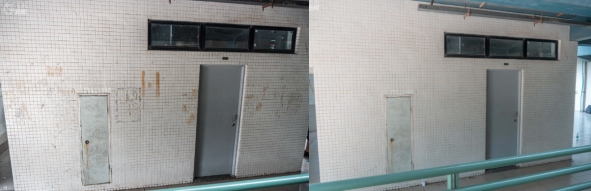 打扫前后的墙面对比