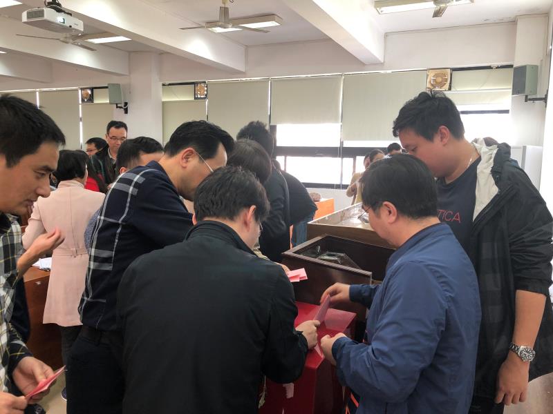 本次大会由学院部门工会主席袁兵主持。首先学院党委书记张育广介绍院“双代会”筹备工作,说明校“双代会”的召开是学校民主管理建设工作中的一件大事,选好代表是开好本次“双代会”的前提和基本条件。随后大会通过了总监票人、监票人和计票人名单,部门工会副主席、总监票人韦爱凤作“双代会”代表选举工作的说明,宣读了候选人名单,并依次介绍各候选人情况,最后采取无记名投票和差额选举的方式,选举产生了王志红等13名校第六届“双代会”代表。同时大会以举手表决的方式通过了校工会委员会委员、校工会经费审查委员会委员、校工会女教职工委员会委员及教代会各专门工作委员会委员预备人选的初步名单。(图/文:248cc永利集团部门工会)