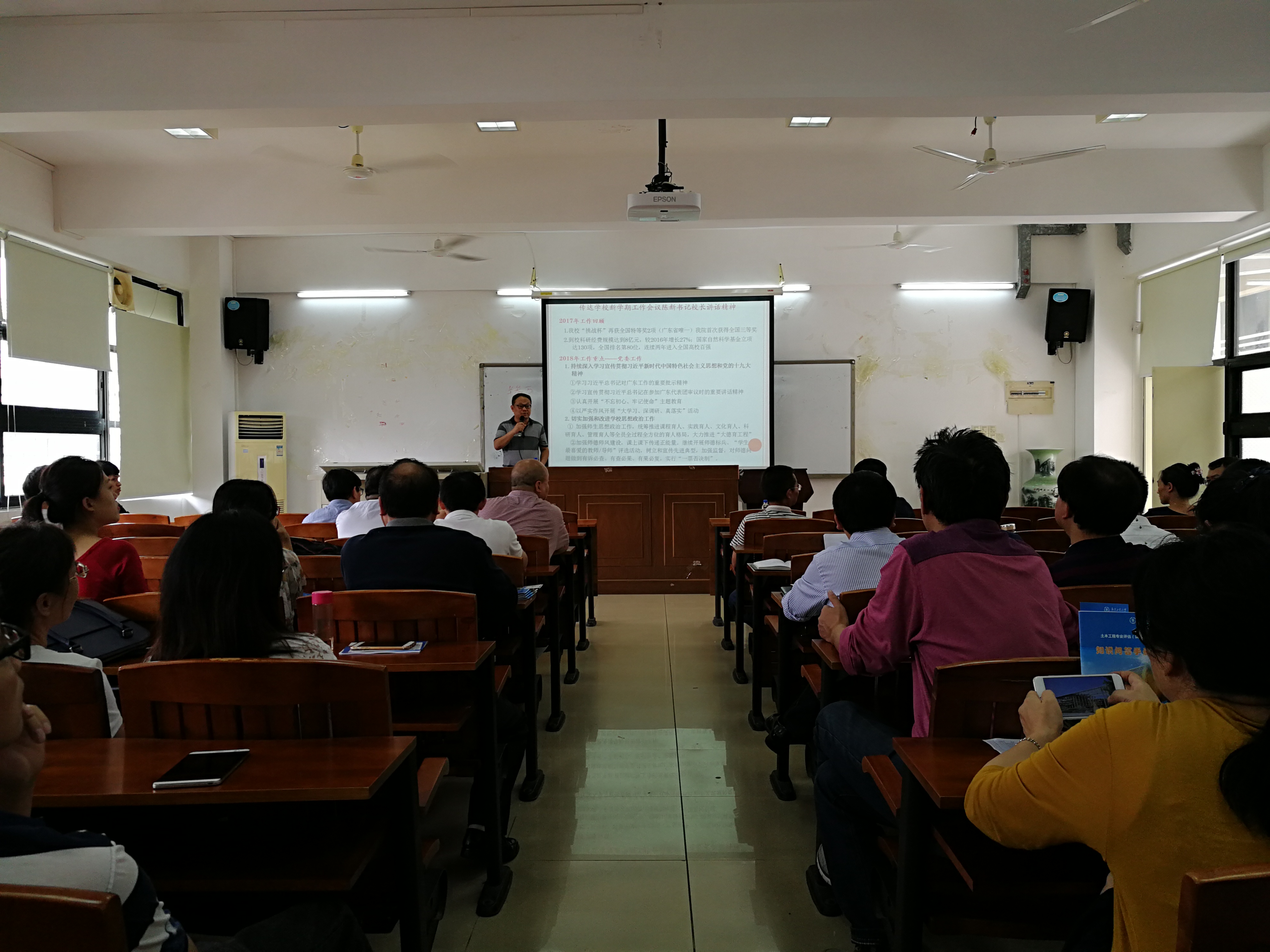学院副院长姜海波做科研工作部署。姜副院长首先小结了上一年度学院科研工作的有关情况,对学院在广东省、广州市科技计划,广东省工程技术研究中心认定申报,广东高校省级重大科研项目认定申报等当中取得成果做了介绍,并重点通报了我院在国家自然科学基金申报、广东省自然科学基金申报中取得的新突破,他要求学院全体科研工作者要有序、稳步推进各在研项目,并及早准备、做好积累,加强学术交流,认真做好下一年度国家自然科学基金申报、省市各级科研计划申报、工程技术研究中心认定申报等准备工作,在质与量上推动学院科研工作再上新台阶。