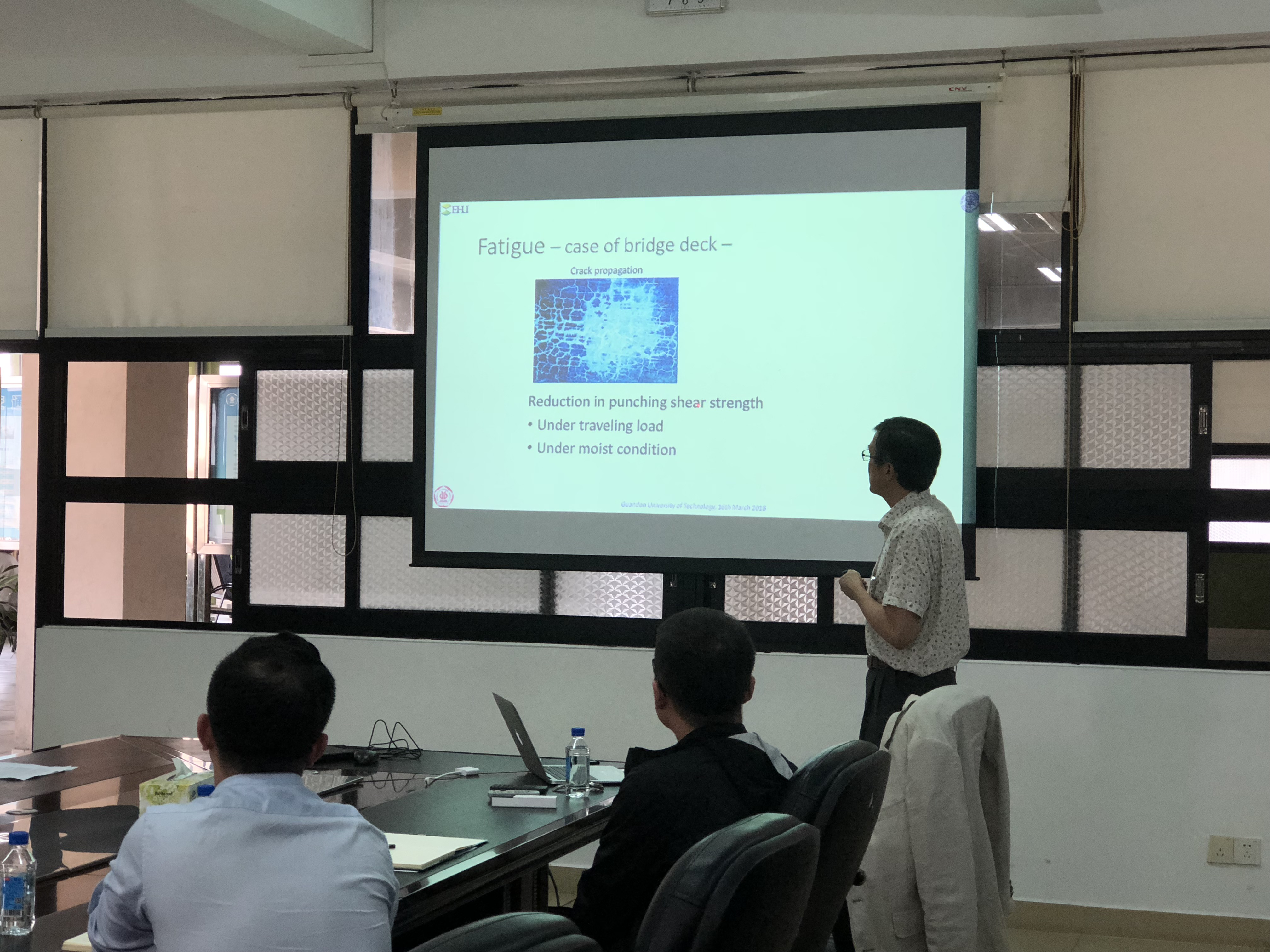 告会上,上田教授深入浅出地解了多种混凝土性能劣化问题的本质(如疲劳、盐害/碳化、碱骨料反应、冻害等)以及如何结合水分离子运移模型和力学模型用细观尺度统一建模方法模拟混凝土不同物理损伤。并详细了模拟混凝土冻害和疲劳复合作用的研究成果及待解决关键科学问题
