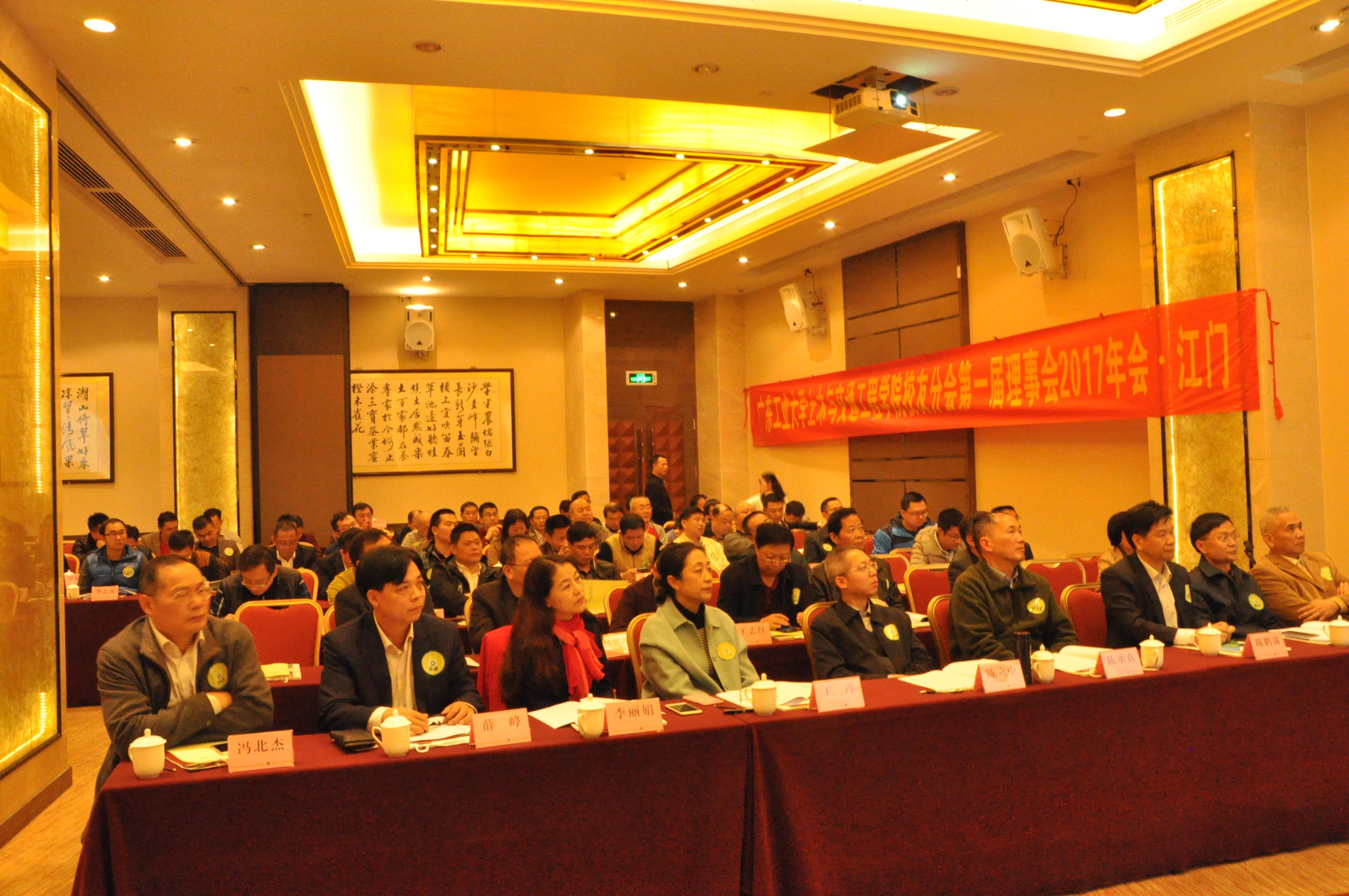 江门校友会会长陈鹏满讲话,他首先对本次理事会年会在江门召开表示感谢和热烈欢迎各地校友,同时他指出江门的许多路桥楼舍凝聚着校友们的智慧与汗水。最后他表示在今后的工作中,要积极组织校友联谊活动,帮助校友获得更好发展。他也感谢母校对江门校友会工作的支持。