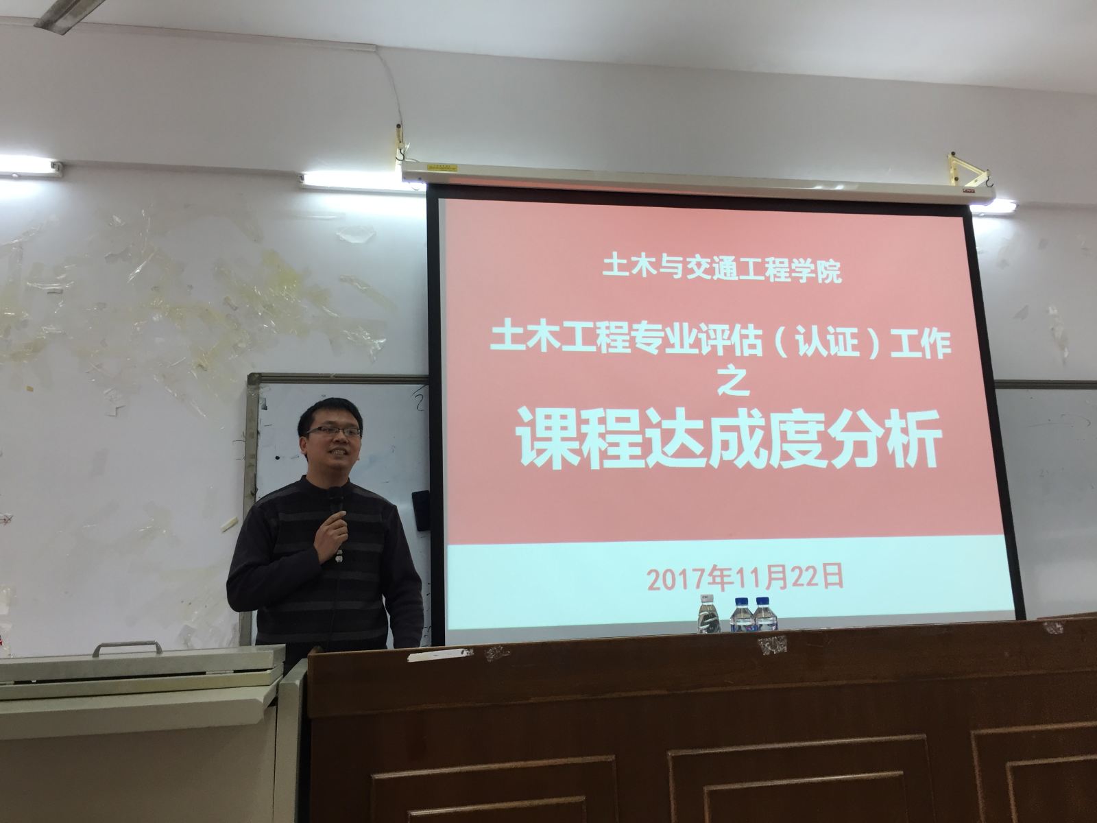 会议中,吴炎海副院长代表学院向外学院承担土木工程专业课程的任课教师表示衷心的感谢,感谢老师们的支持和配合。学院教学秘书、土木工程系副主任何嘉年向参会的老师们进行了专题汇报,深入解读了土木工程专业评估(认证)的精神和要求,阐述了任课教师在专业评估(认证)工作和课程体系建设中的重要地位和积极作用,详细解析了课程大纲修订和课程达成度分析等工作具体实施方法。