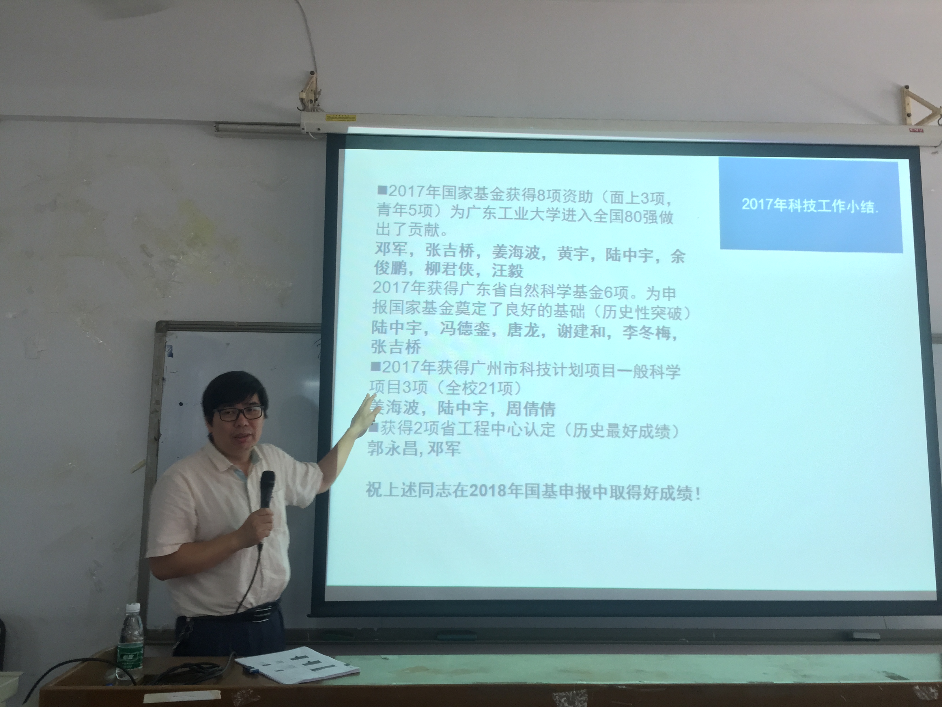 副院长姜海波对学院2017年科研工作进行了小结,对下一年国家自然科学基金申报工作进行了部署,并要求与会教师要认真准备,打好国家自然科学基金申报攻坚战。副院长史宏彦就2018年本科教学实验室建设项目计划申报工作做了部署和说明。