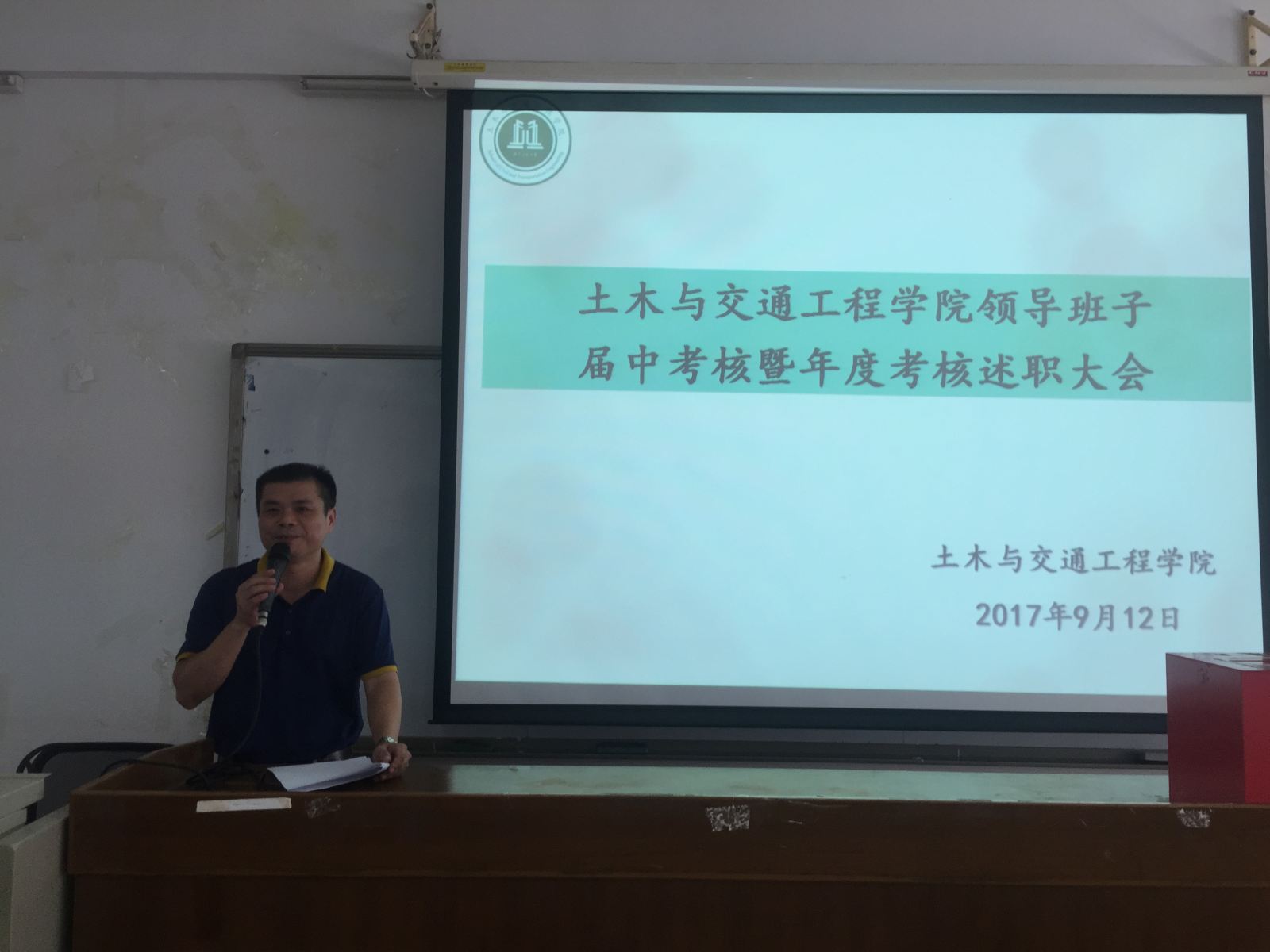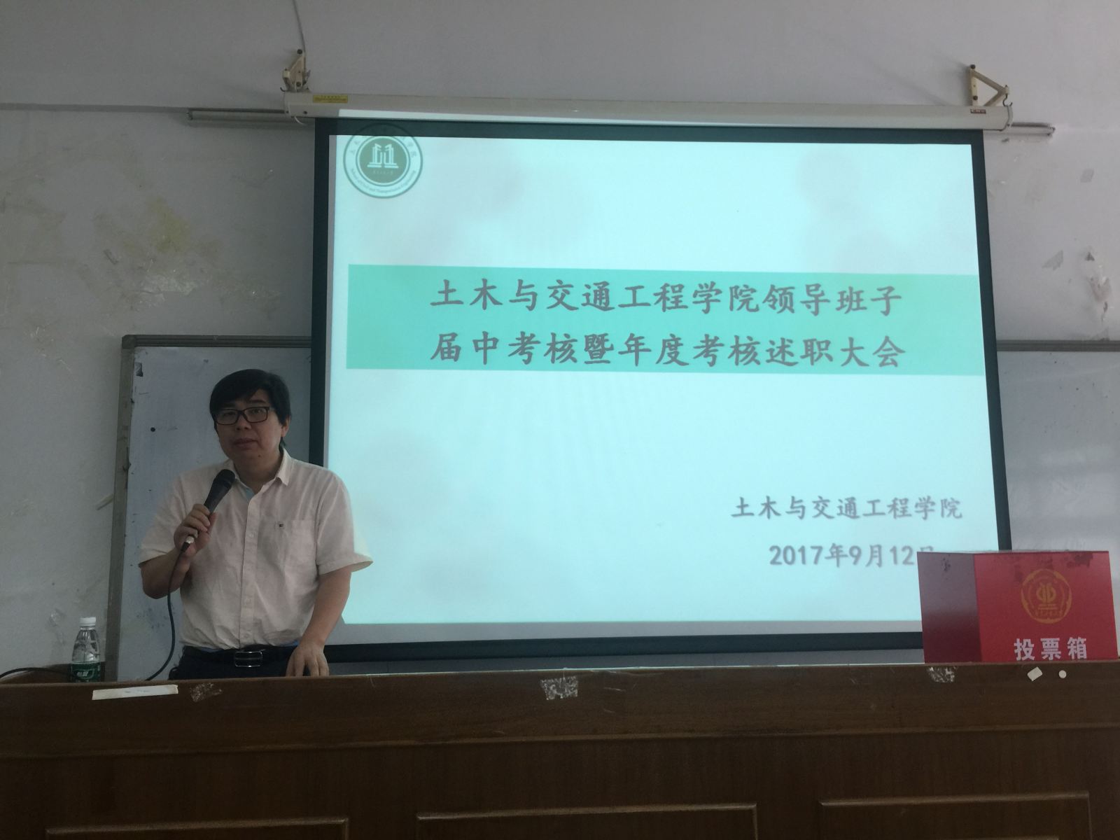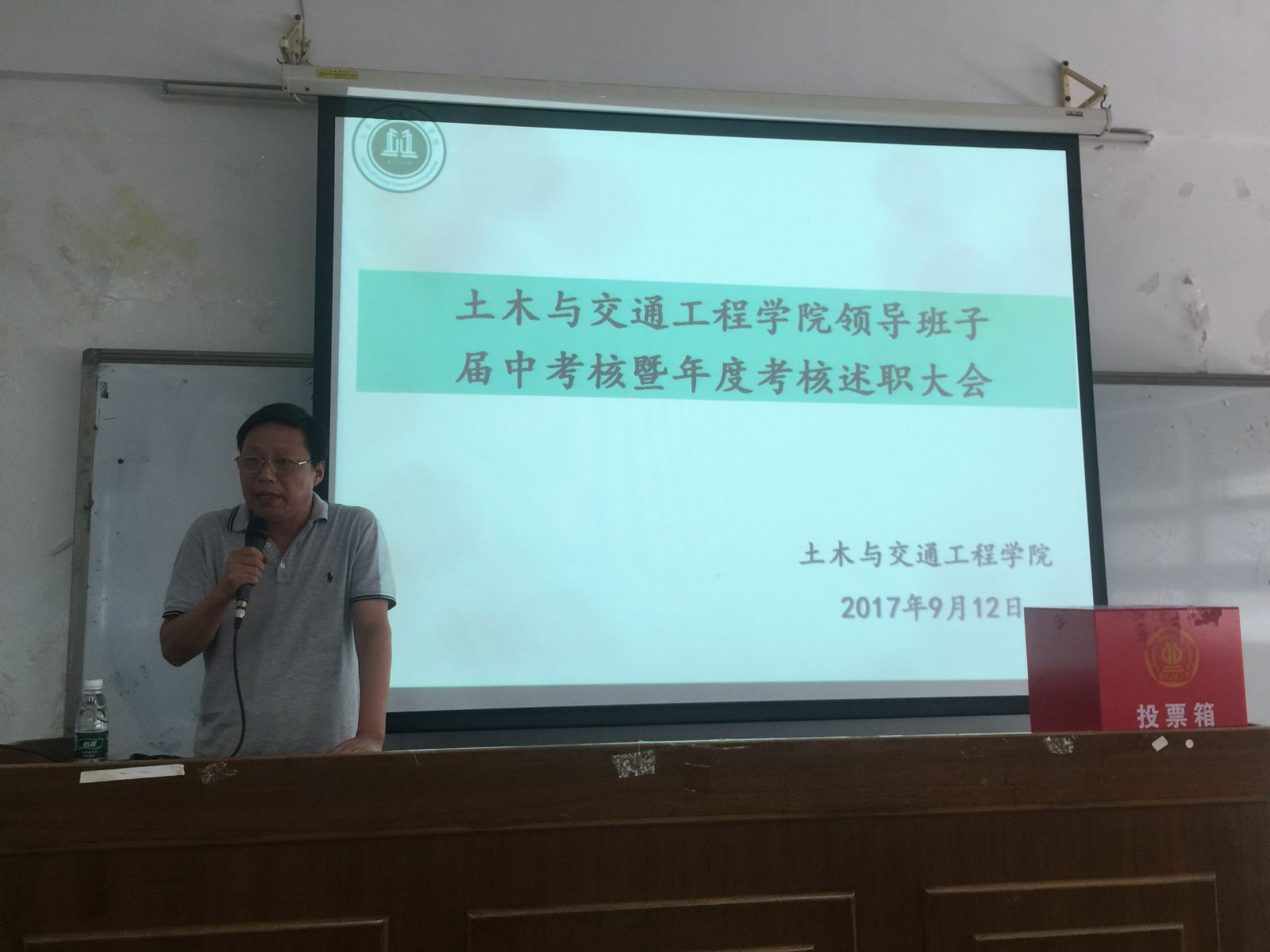 9月12日下午,我院在实验二号楼520召开了学院领导班子届中考核述职曁年度考核述职大会。学校党委组织部副部长郑鹏、党校办公室副主任董尚朝出席述职大会。我院全体教职工参加了会议。
