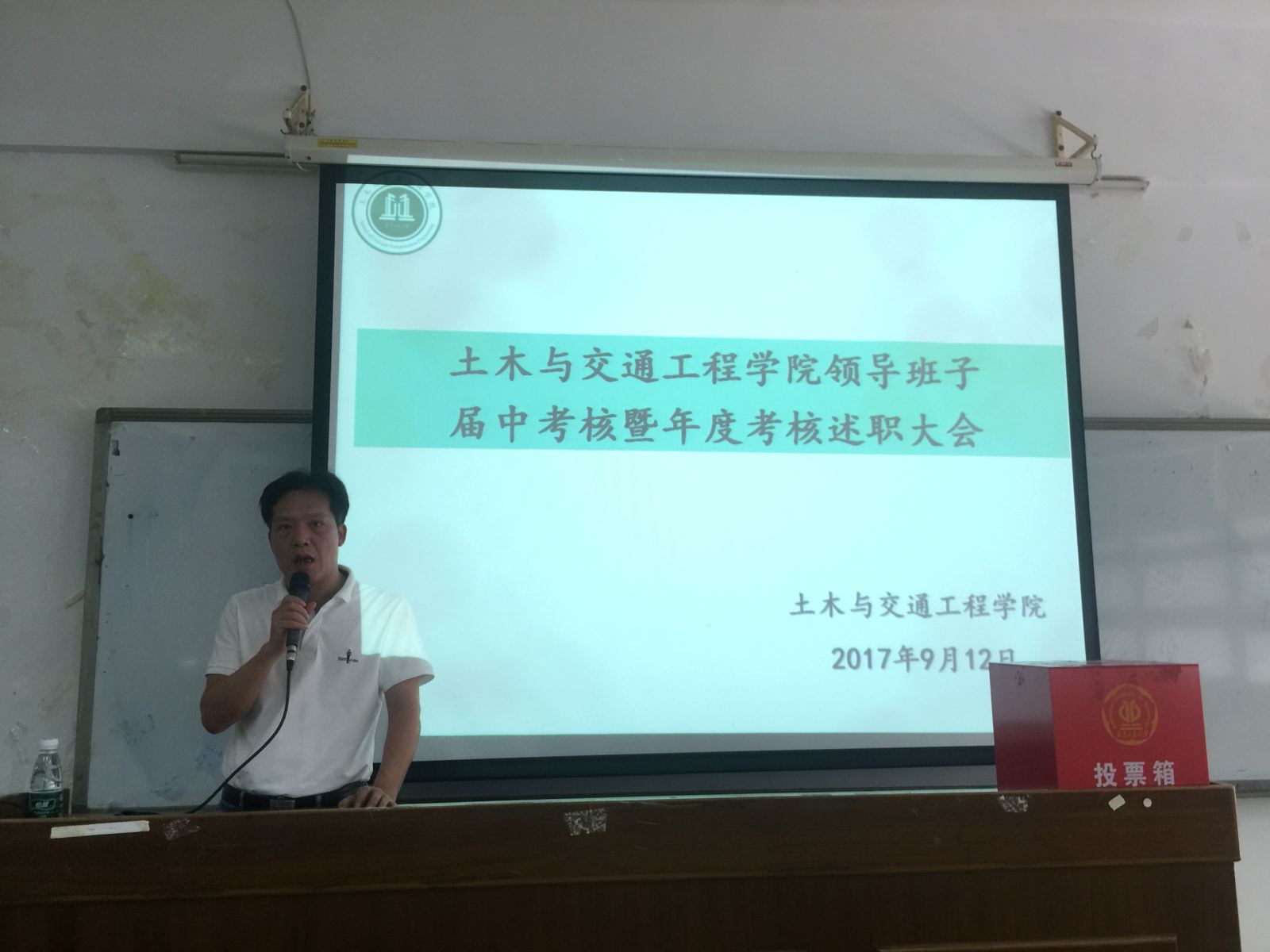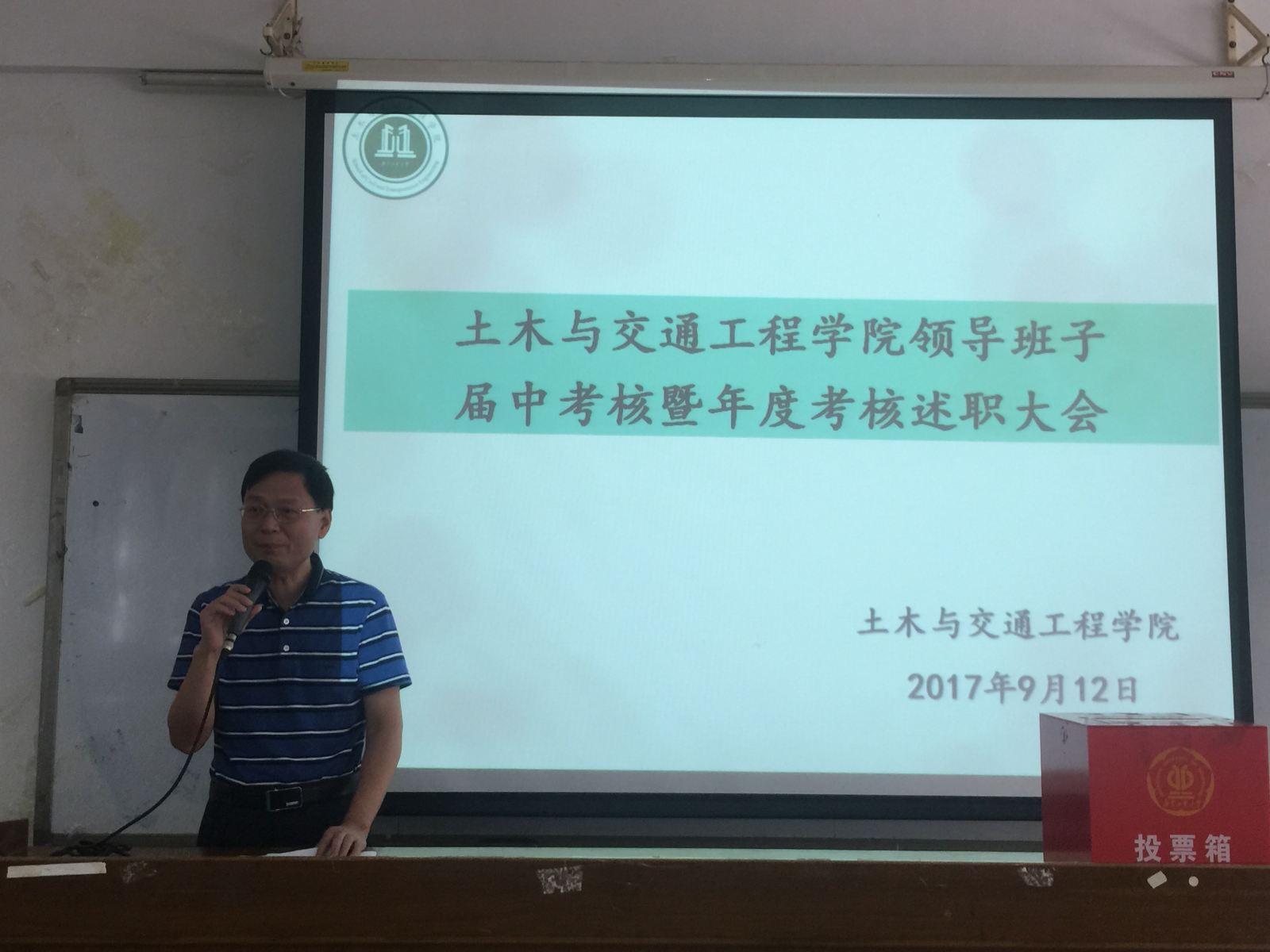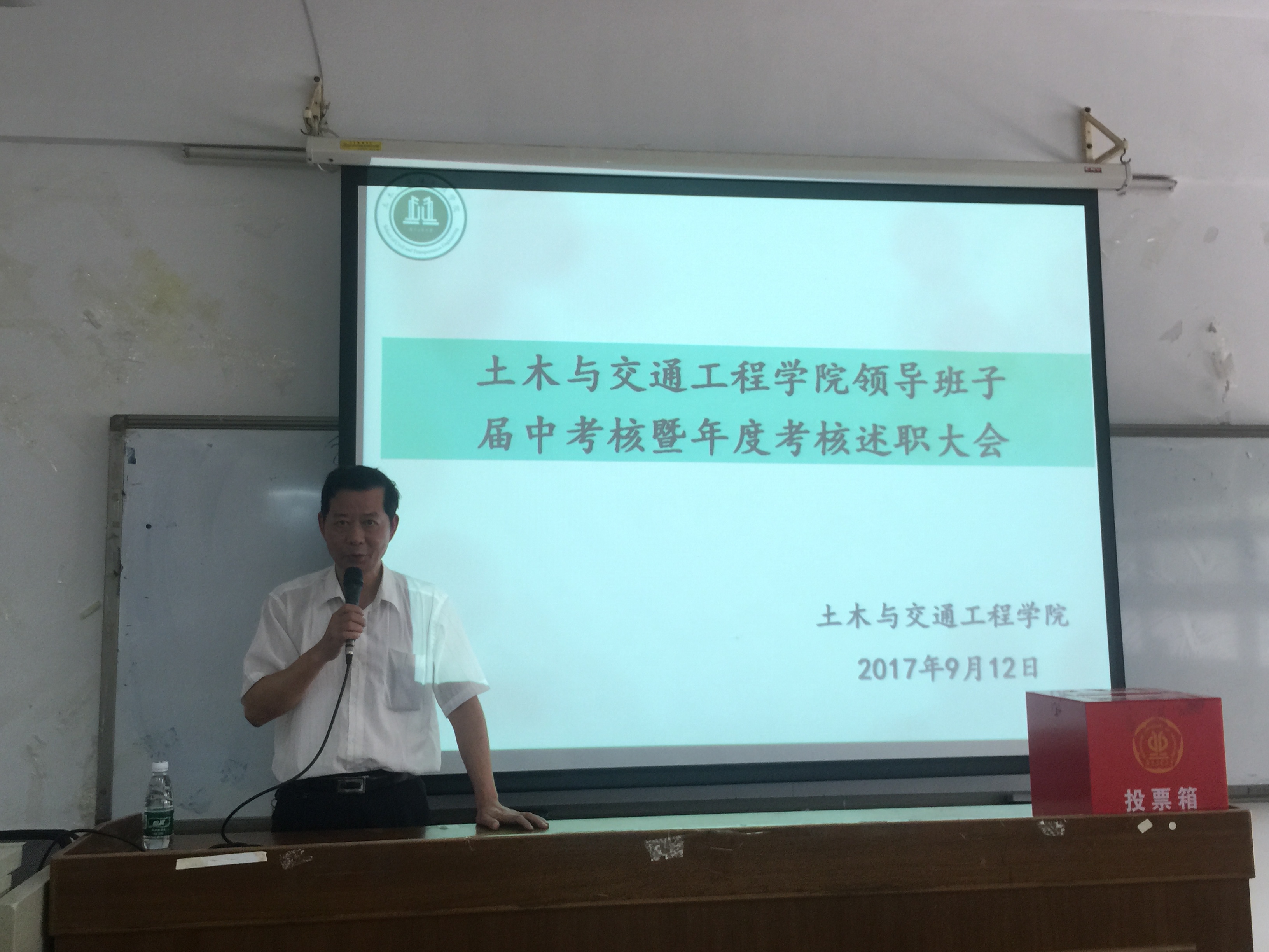 9月12日下午,我院在实验二号楼520召开了学院领导班子届中考核述职曁年度考核述职大会。学校党委组织部副部长郑鹏、党校办公室副主任董尚朝出席述职大会。我院全体教职工参加了会议。