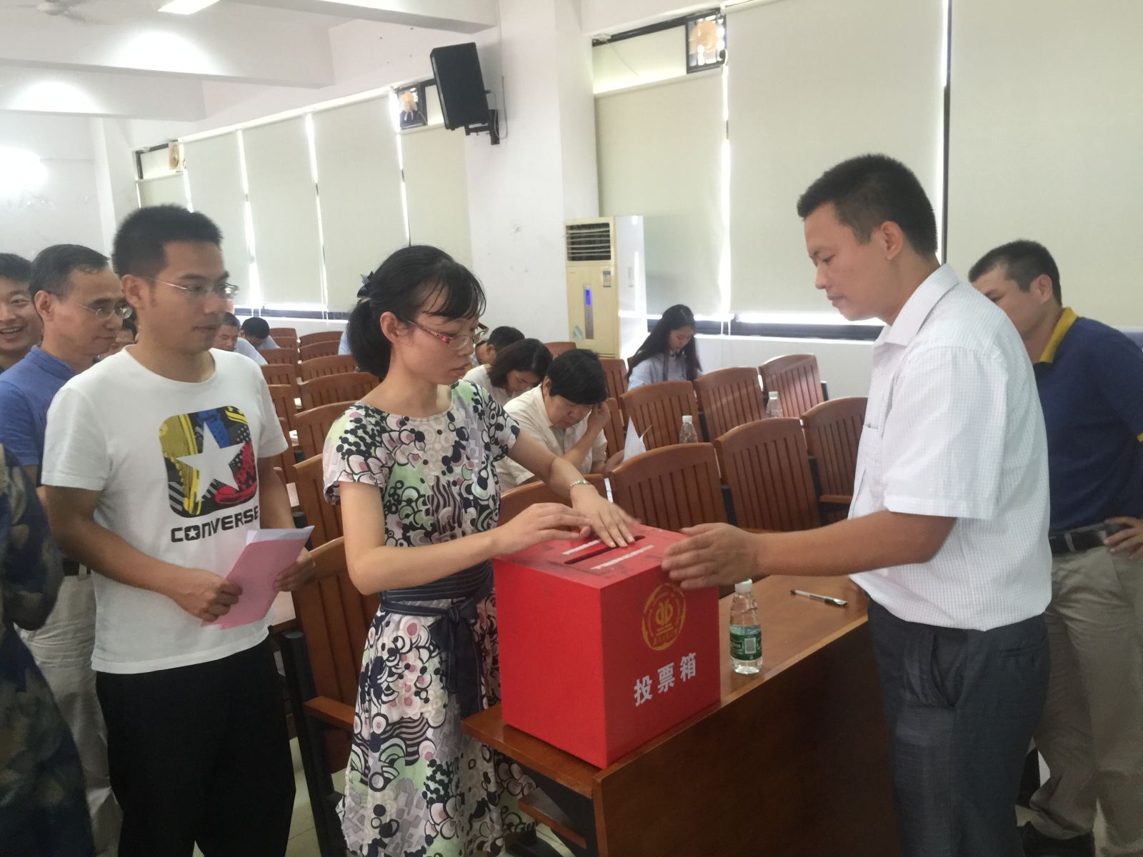 述职环节结束后,与会教职工对学院领导班子及成员进行了无记名投票评议。