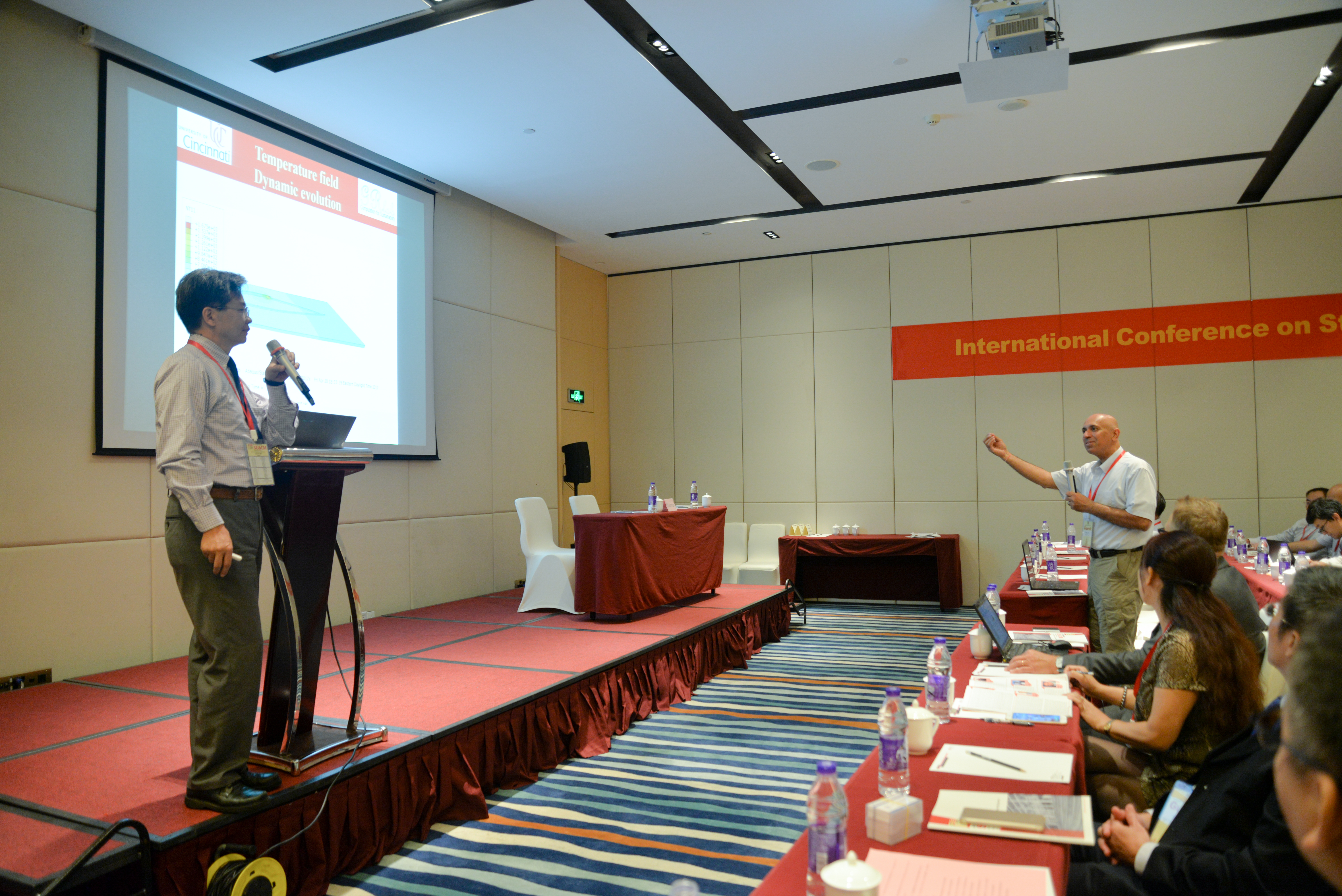 会议期间,来自英国剑桥大学、美国辛辛那提大学、美国堪萨斯大学、法国工程技术大学、立陶宛维尔纽斯科技大学、香港大学、香港理工大学、香港城市大学、澳大利亚西澳大学、西安交通大学的专家学者作了主题报告,来自清华大学、上海交通大学、浙江大学、东南大学、哈尔滨工业大学、中科院力学所、华南理工大学、广东工业大学等15所院校的专家学者作了邀请报告。来自各地的相关研究人员、学者和专业人士120余人参加了会议。会议期间,陈立中副校长莅临会场,与与会专家学者进行了交流,并对会议的成功举办表示了祝贺。