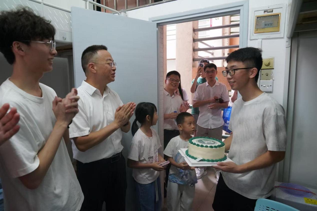 迎新季暖意融融,学院特别为当天过生日的新生,定制了印有院徽的专属生日蛋糕,让惊喜与归属感撞个满怀。学院领导与辅导员亲手将蛋糕送到新生手中,众人一同唱响生日歌,温馨的祝福满溢现场。这份专属心意,不仅是学院对新生的细致关怀,更拉开了师生双向奔赴的美好序幕——既让初来乍到的新生倍感温暖,也让陪同的家长切实感受到学院浓厚的人文关怀。