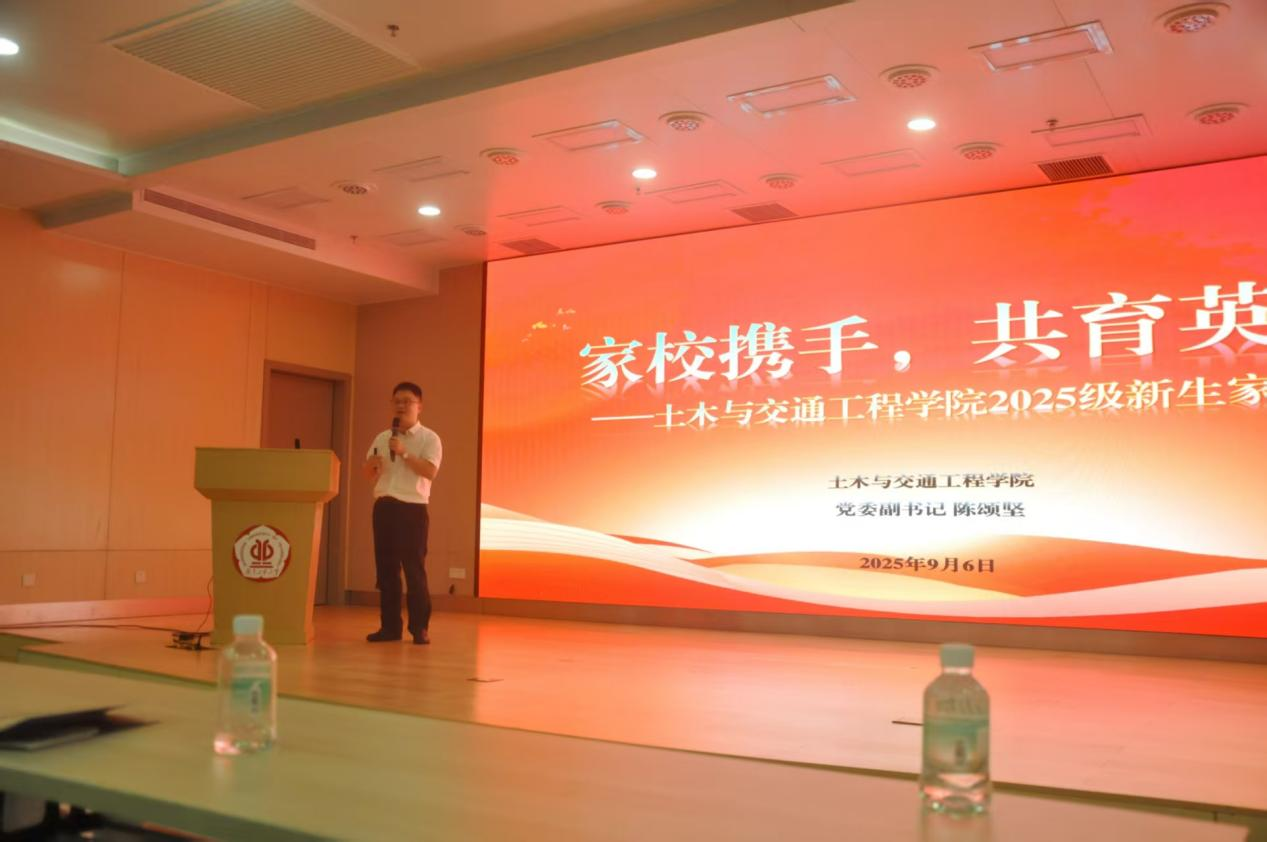 最后,党委副书记陈颂坚以“家校携手,共育英才”为主题为家长们作了如何共同帮助学生树立目标,及早制定大学规划,明确职业发展方向的报告。 他先是结合行业趋势,深入分析了土木专业的发展前景与就业方向,随后围绕考研升学、考公考编等家长重点关注的成长路径,与大家共同探讨新生在校期间的适应与发展规划。