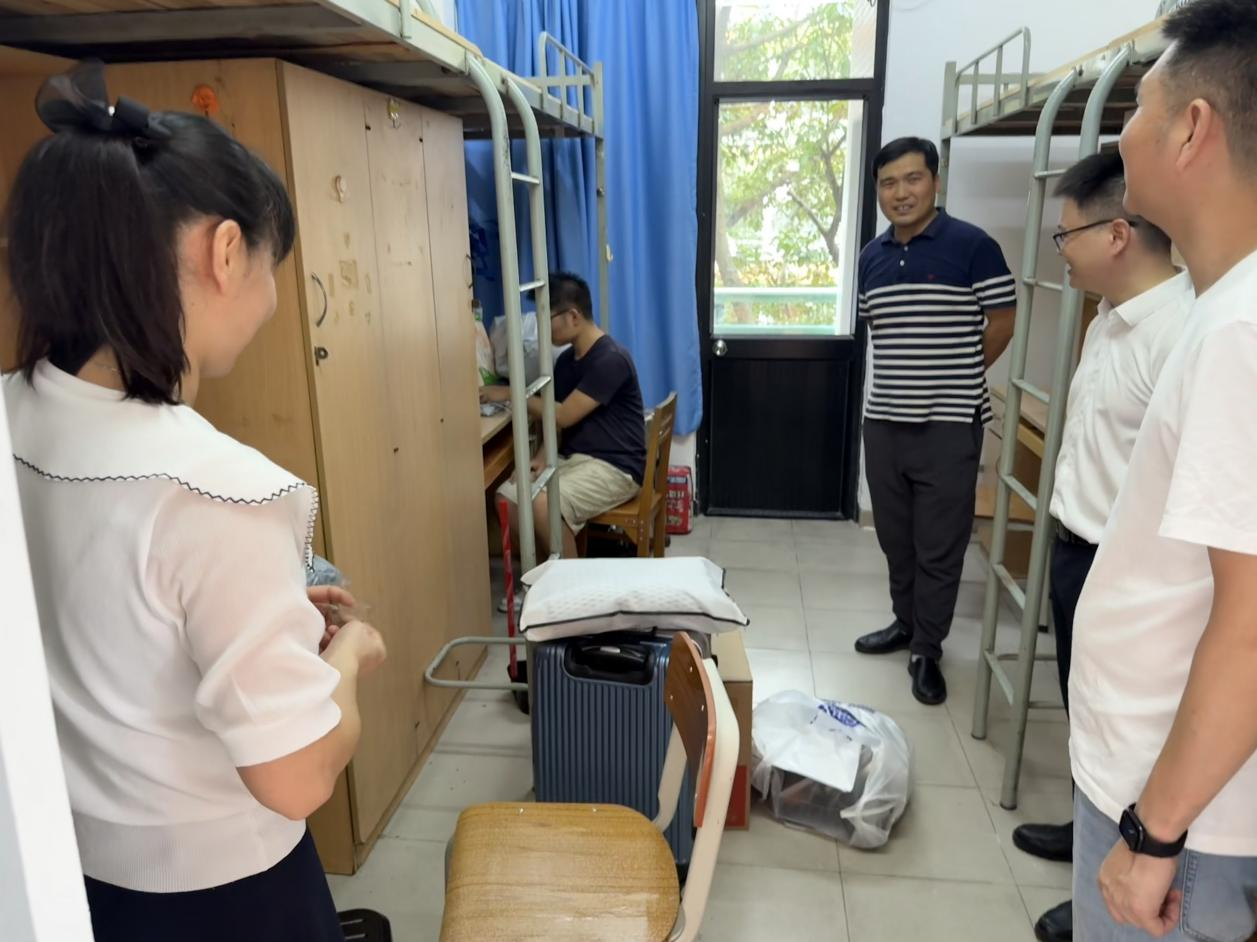 学院党委书记周建强、院长赵志伟、党委副书记陈颂坚、副院长何嘉年、副院长许闯等领导,与新生辅导员一道深入宿舍,同已报到的新生及家长展开亲切交流。交流中,领导老师们耐心倾听新生对大学生活的期待,细致解答他们关于学业、生活的各类疑问。欢声笑语萦绕在宿舍里,新生们在暖心互动中切实感受到学院的关怀与温度,心与心的距离也在不经意间悄然拉近。