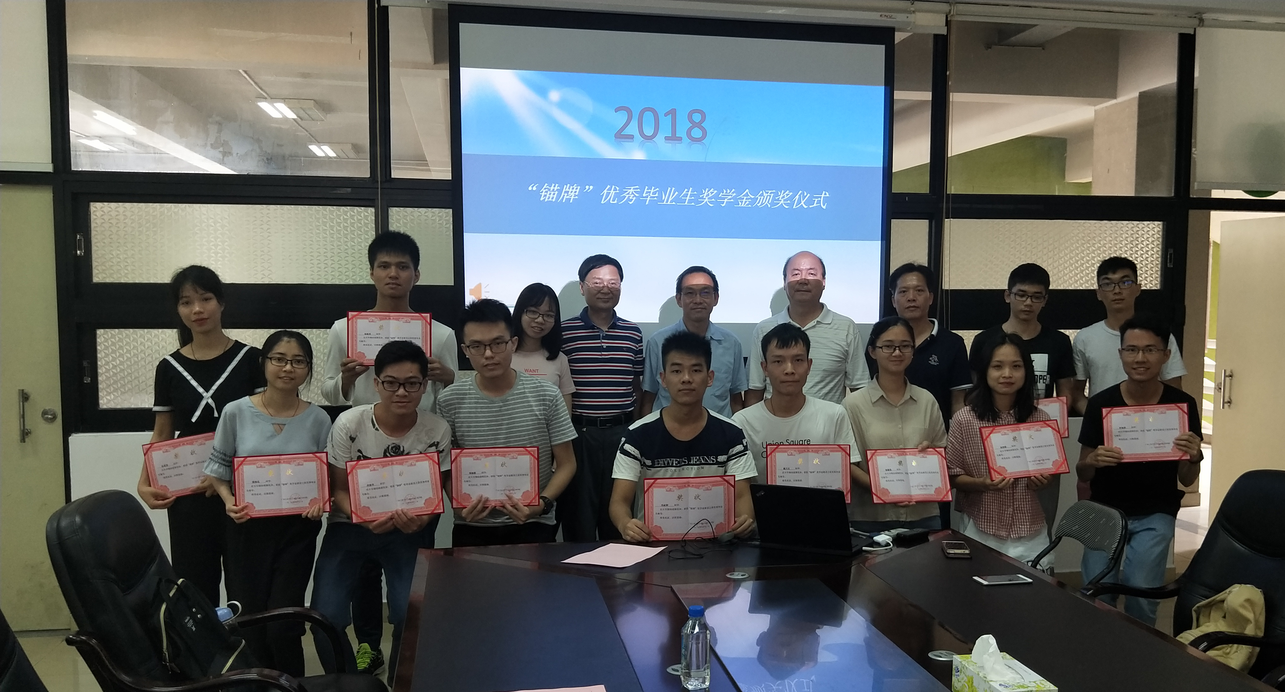 2018年6月12日下午,由中山环宇实业有限公司赞助的“锚牌”优秀毕业生奖学金颁奖仪式在广东工业大学实验二号楼502顺利举行。出席本次颁奖仪式的嘉宾有:中山环宇实业有限公司财务总监曾镇国先生,营销秘书梁培欣女士,永利集团官网徐向东书记,郭维喜副书记,城市公用设备系主任梅胜老师。