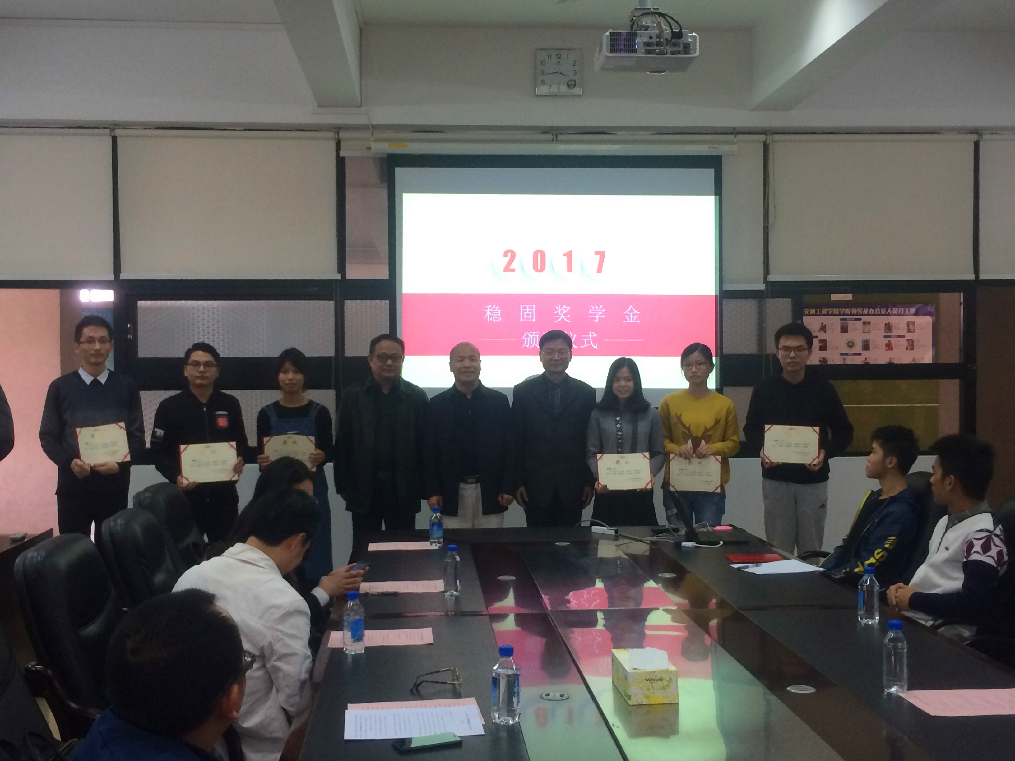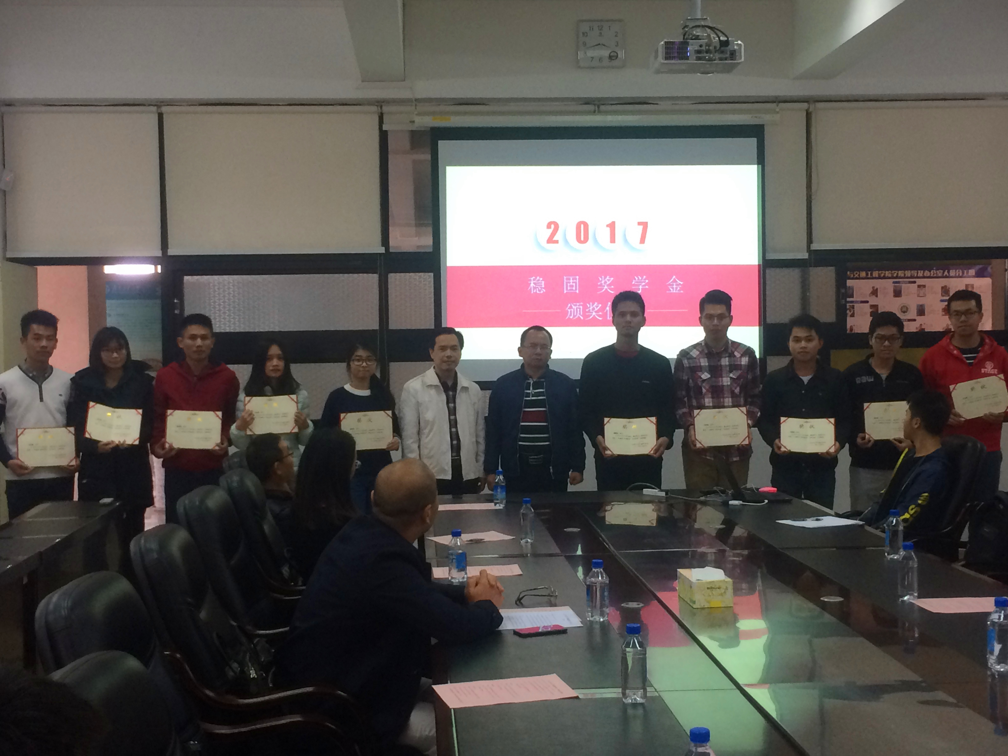 2017年12月26日下午,由广东稳固赞助的“稳固奖学金”顺利地在广东工业大学举行了颁奖仪式。广东稳固董事长邓锦尚先生、副总经理陈水冰先生、副总经理邝炳添先生、办公室主任何海燕女士、办公室副主任颜川茗先生,248cc永利集团刘锋院长、党委徐向东书记及学院各级师生出席了本次颁奖仪式。