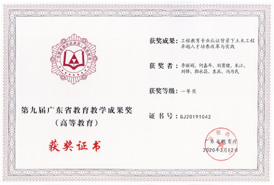 近年,土木工程专业获得国家级教学成果奖二等奖1项,省级教学成果奖一等奖4项,省级教学成果奖二等奖2项,校级教学成果奖9项;建设国家一流课程2门,省级一流课程10门,省级课程思政示范课3门,省级教学团队2个,省级课程思政教学团队1个,省级课程教研室2个。