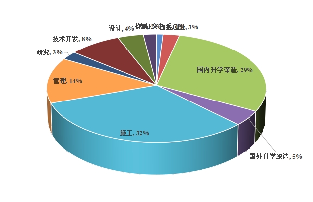 很多著名企业常年招聘本专业的毕业生,如中建集团、中铁建设集团、中交集团、广州地铁集团、广东省建工集团、广州建筑集团总公司、广州市市政工程设计研究总院、广东省建筑设计研究院有限公司等。近年,香港特别行政区建造咨询类企业特别青睐我校土木工程专业的学生,2022年土木工程入选香港建造业内地人才需求指定专业。近年,学生从事公务员或在事业单位工作约占10%。同时,本专业可推荐免试硕士研究生,给予毕业生更多深造机会。